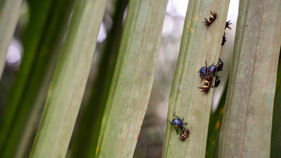 A empresa lança mão de vários métodos naturais para combater as pragas das plantações. Um deles é um laboratório de criação de percevejos, que são predadores da lagarta-desfolhadora, uma das pragas mais comuns das plantações de palma.