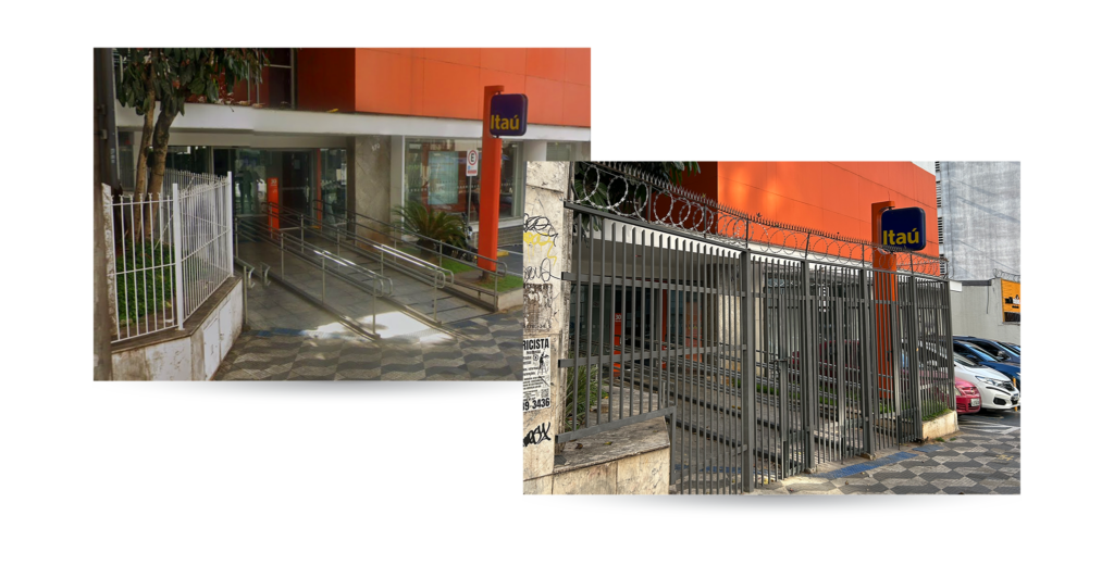 Com isso, a cidade, que basicamente deveria ser um espaço de convivência e de troca entre os moradores, acaba sendo um espaço fragmentado – muitas vezes hostil e segregado. As fachadas dos prédios fazem isso o tempo todo. Grades ou muros altos, vegetação espinhosa, cercas elétricas e concertinas. Segundo Caio Vassão, doutor em design e arquitetura pela Universidade de São Paulo (FAU-USP), existe uma diferença entre aquilo que pode ser considerado apenas um ritual de segurança e medidas que são convertidas em proteção, de fato. “As pessoas acreditam que, isolando-se e sendo hostis a qualquer pessoa que tente se aproximar, elas vão garantir a segurança delas. Mas isso não acontece.”
